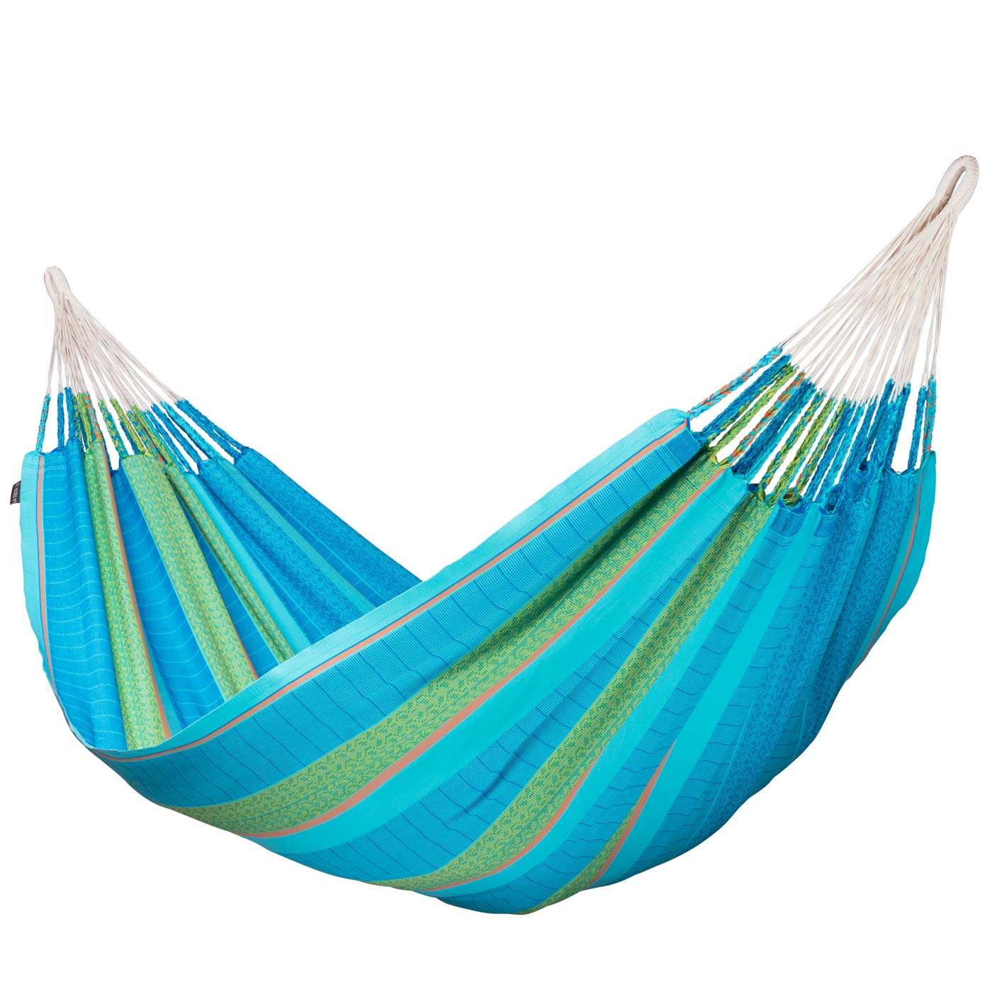 FLORA - Mit dieser groẞzügigen Bio-Hängematte in Jacquardwebart erblüht Ihr Garten in prächtigen Farben. Kunstvolle Pflanzenmuster geben Einblicke in die Webkunst Kolumbiens. Flora, eine einzigartige Hängematte, ist gefertigt mit traditionellen kolumbianischen Zöpfchen, den Cadejos, für den besonderen Liegekomfort.