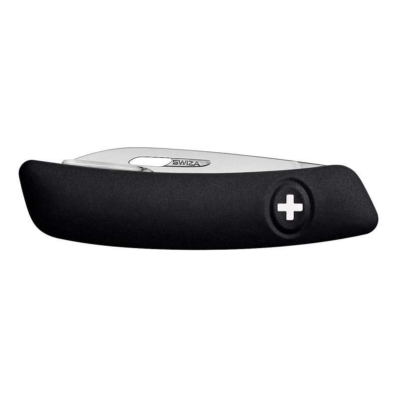 Die 75 mm lange Klinge aus hochwertigem AISI 440 Stahl, gehärtet auf 57 HRC, bietet ausgezeichnete Schnitthaltigkeit und Stabilität. Für maximale Sicherheit ist die Klinge arretierbar und lässt sich durch Druck auf das charakteristische Schweizer Kreuz – das Markenzeichen von Swiza – einfach wieder einklappen.