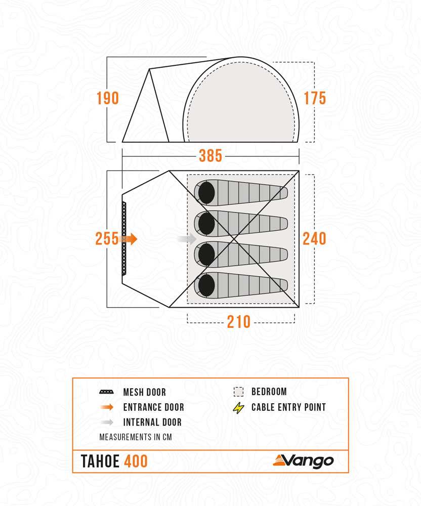 Das Campingzelt Vango Tahoe 400 ist ein kompaktes und vielseitiges 4-Personen-Zelt für Camping, Festivals und Wochenendtrips. Der große Vorraum mit integrierter Bodenplane bietet Platz für Ausrüstung und schützt zuverlässig vor Wind und Wetter.