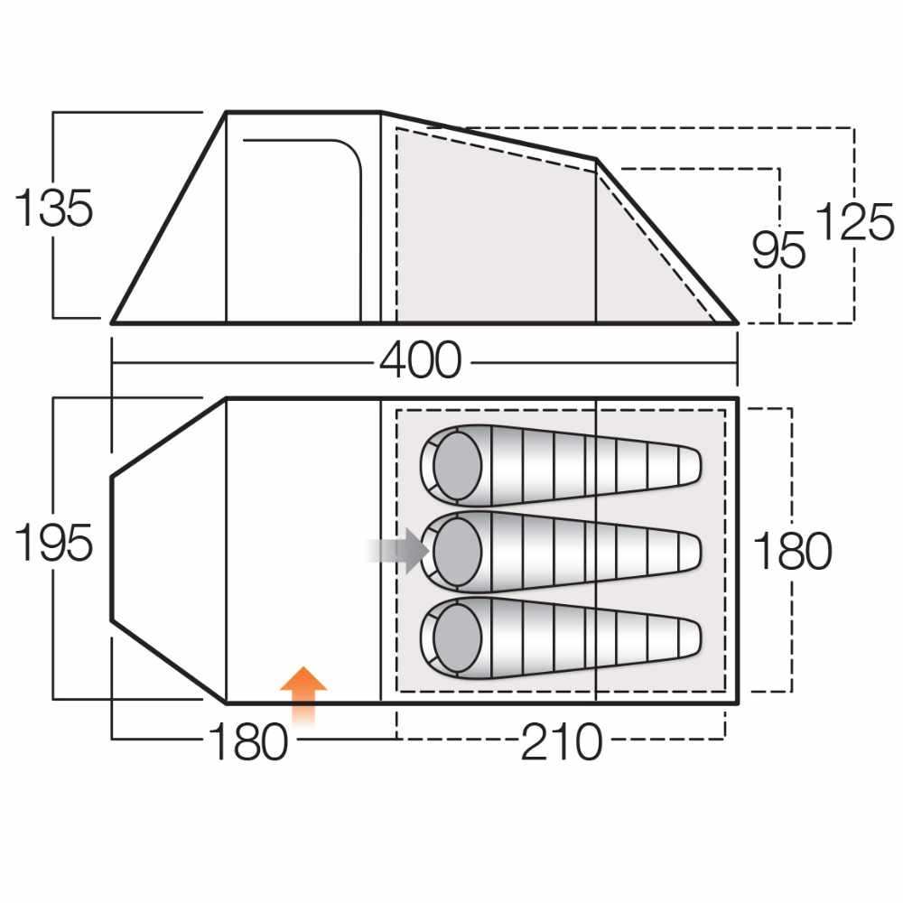 Das Vango Skye ist ein Tunnelzelt mit 3 Gestängebögen. Es ist einfach aufzubauen und bietet viel Platz. Die große Vorraum eignet sich hervorragend für die Aufbewahrung von Allerlei und verfügt über ein Bodenplane, das bei Bedarf unter den Schlafzimmerbereich gerollt werden kann. Klare Seitenfenster lassen Licht in den Vorraum, während die abgedunkelte Schlafzimmer das Licht am frühen Morgen reduziert. Dieses Zelt ist eine gute Wahl für Wochenendcamps und Festivals.