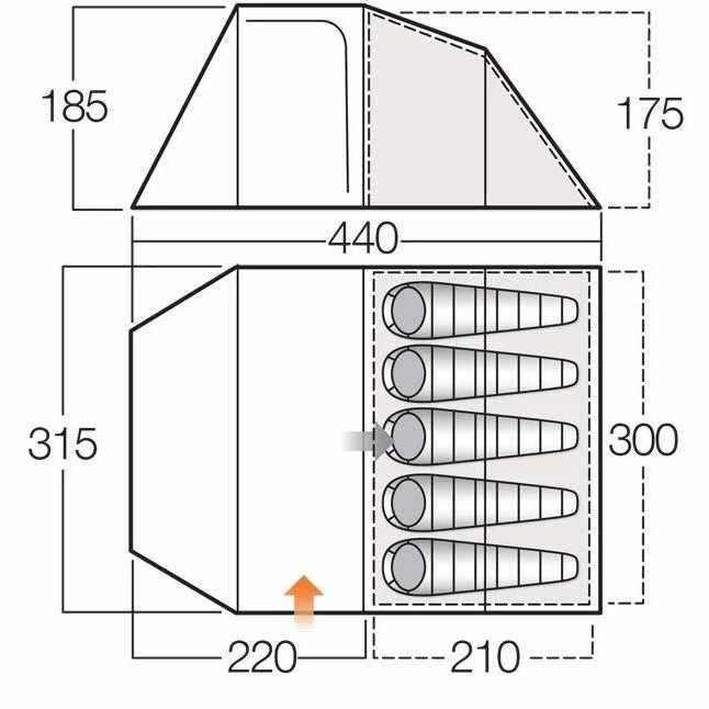 Das Vango Skye ist ein Tunnelzelt mit 3 Gestängebögen. Es ist einfach aufzubauen und bietet viel Platz. Die große Vorraum eignet sich hervorragend für die Aufbewahrung von Allerlei und verfügt über ein Bodenplane, das bei Bedarf unter den Schlafzimmerbereich gerollt werden kann. Klare Seitenfenster lassen Licht in den Vorraum, während die abgedunkelte Schlafzimmer das Licht am frühen Morgen reduziert. Dieses Zelt ist eine gute Wahl für Wochenendcamps und Festivals.